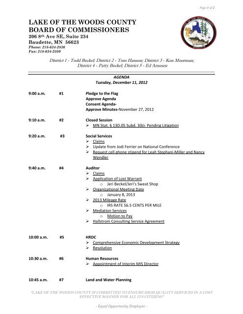 Lake Of The Woods County Board Of Commissioners